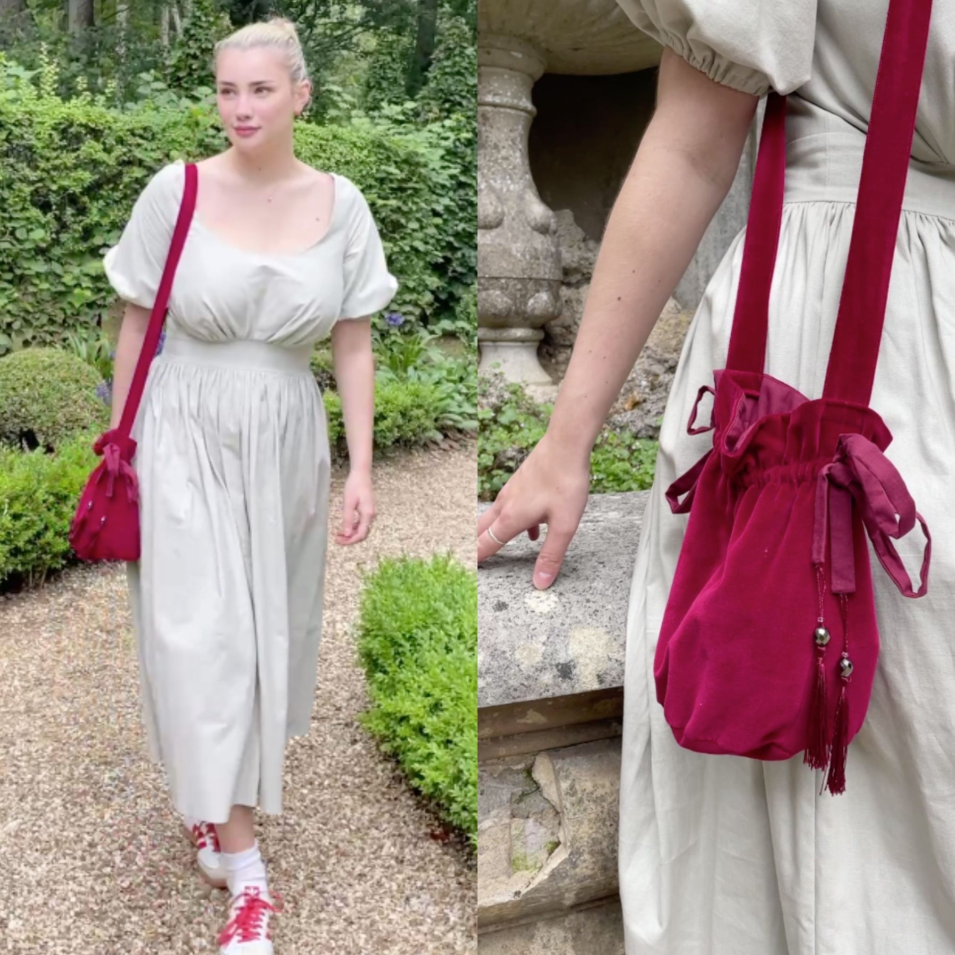 Think regency-era bags meets cottagecore practicality — all wrapped up in a project you can sew in an afternoon.