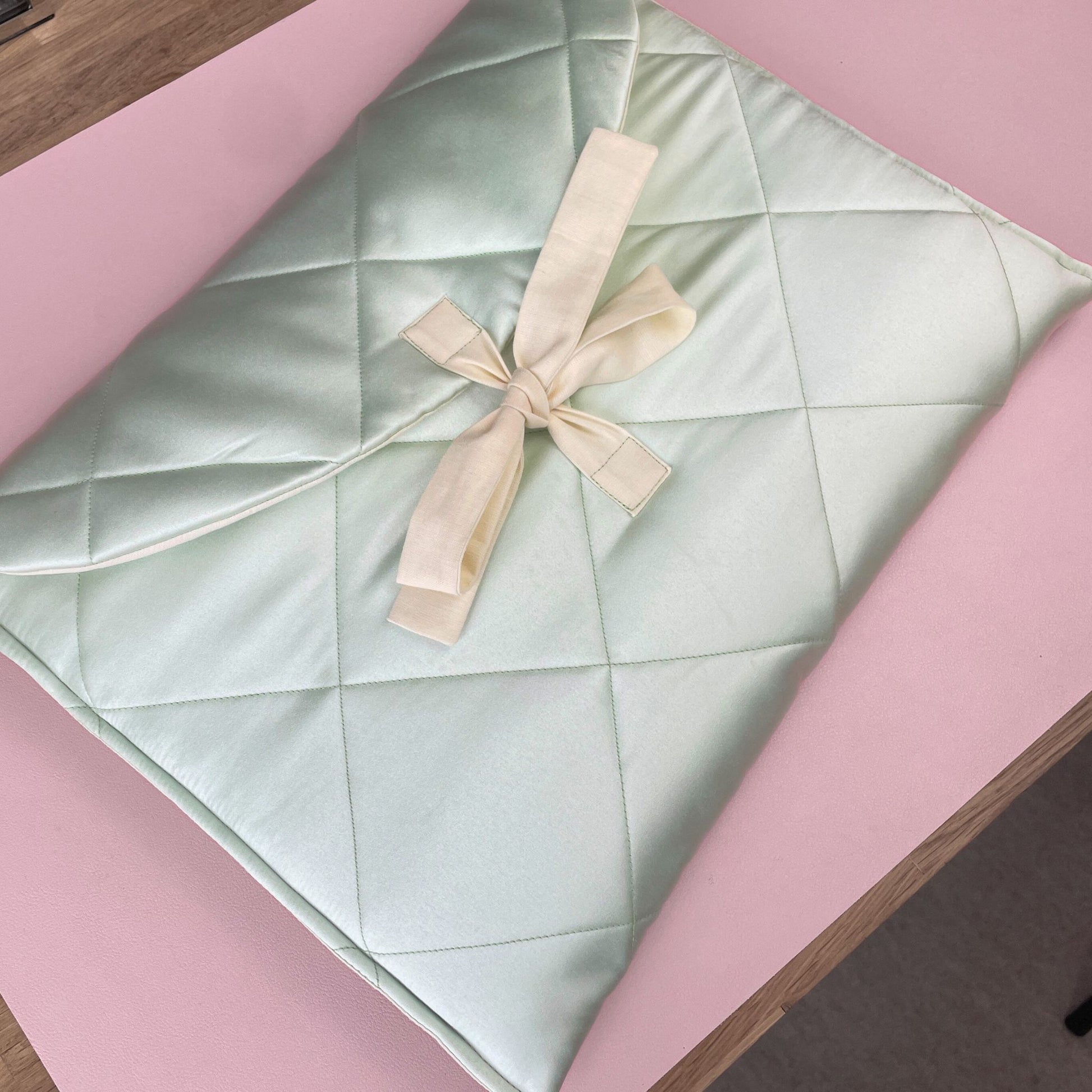 Sew your own beautiful quilted laptop sleeve with a tie bow detail! This padded case is perfect for protecting your laptop and makes a great, thoughtful, handmade gift.